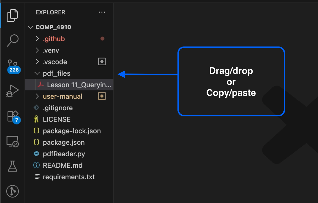 To get started, simply add your PDF file(s) to the pdf_files/ directory in your project. Once your files are in place, use the /parse_pdf slash command. The agent will automatically locate your PDFs, extract the text, and organize the content for textbook creation.